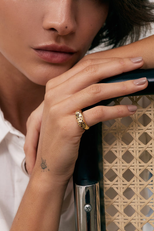 A Linha Poesie é uma extensão da marca focada em peças emocionais, criadas para celebrar laços profundos com familiares, amigos, parceiros e até pets. Com joias que podem ser personalizadas com iniciais, datas ou palavras significativas.