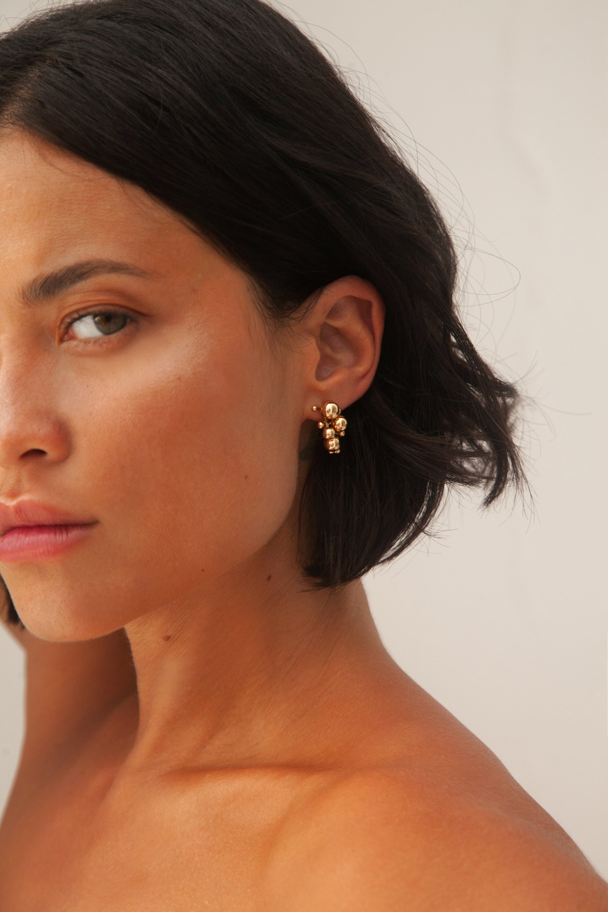 Com esferas que simbolizam o continuo ciclo da vida. Feito em ouro amarelo 18k, pode ser usado com ou sem a franja de correntes.