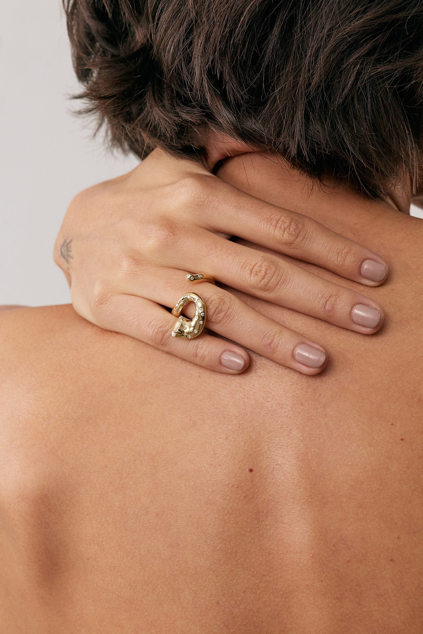 O anel Essence se destaca pela sua ousadia e design original. O formato tubular orgânico e único deste anel, inspirado na tuba uterina, órgão do sistema reprodutor feminino com uma função essencial na condução e geração da vida, com curvas suaves e delicadas, criando uma sensação de movimento e fluidez este anel se torna uma peça poderosa da coleção.