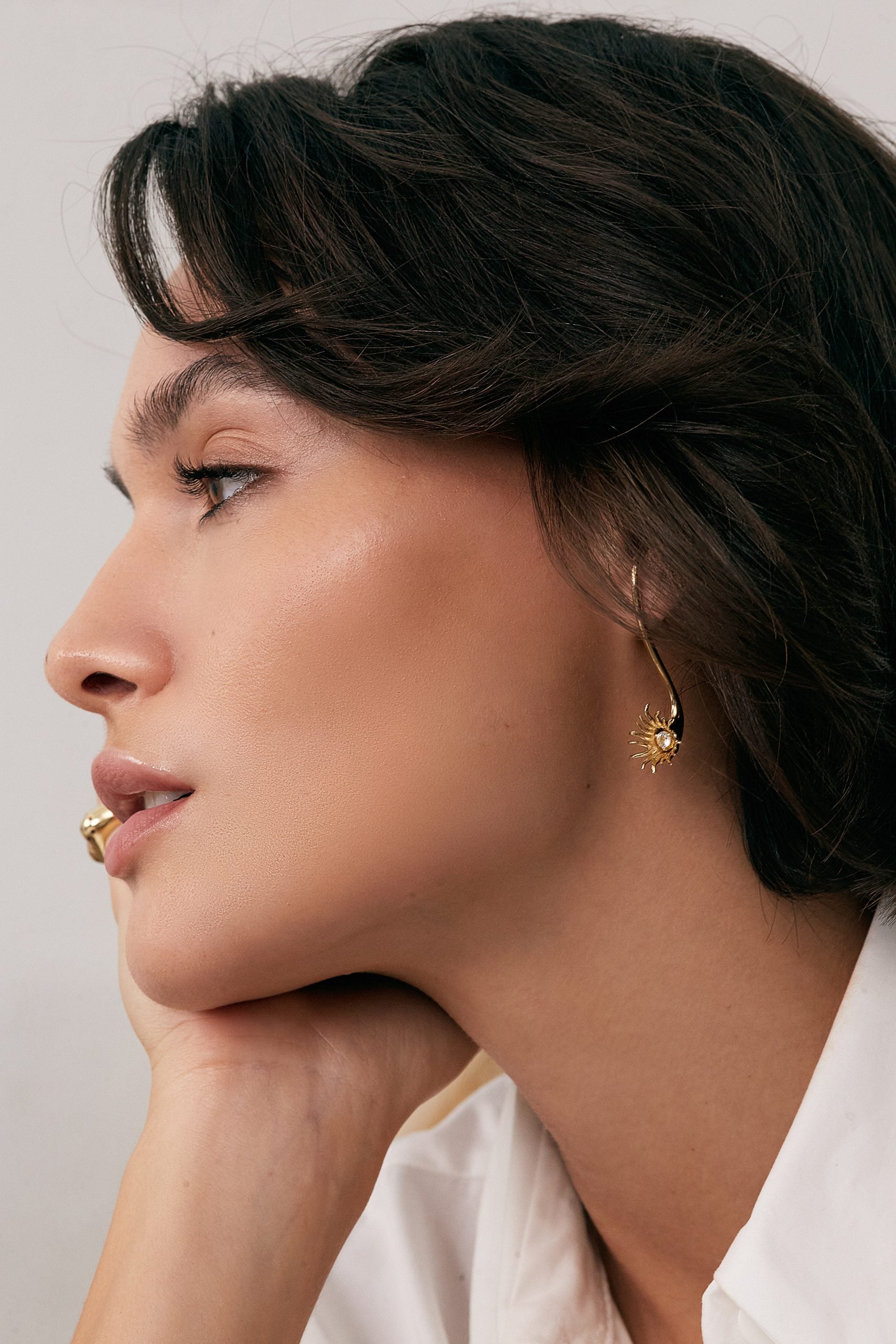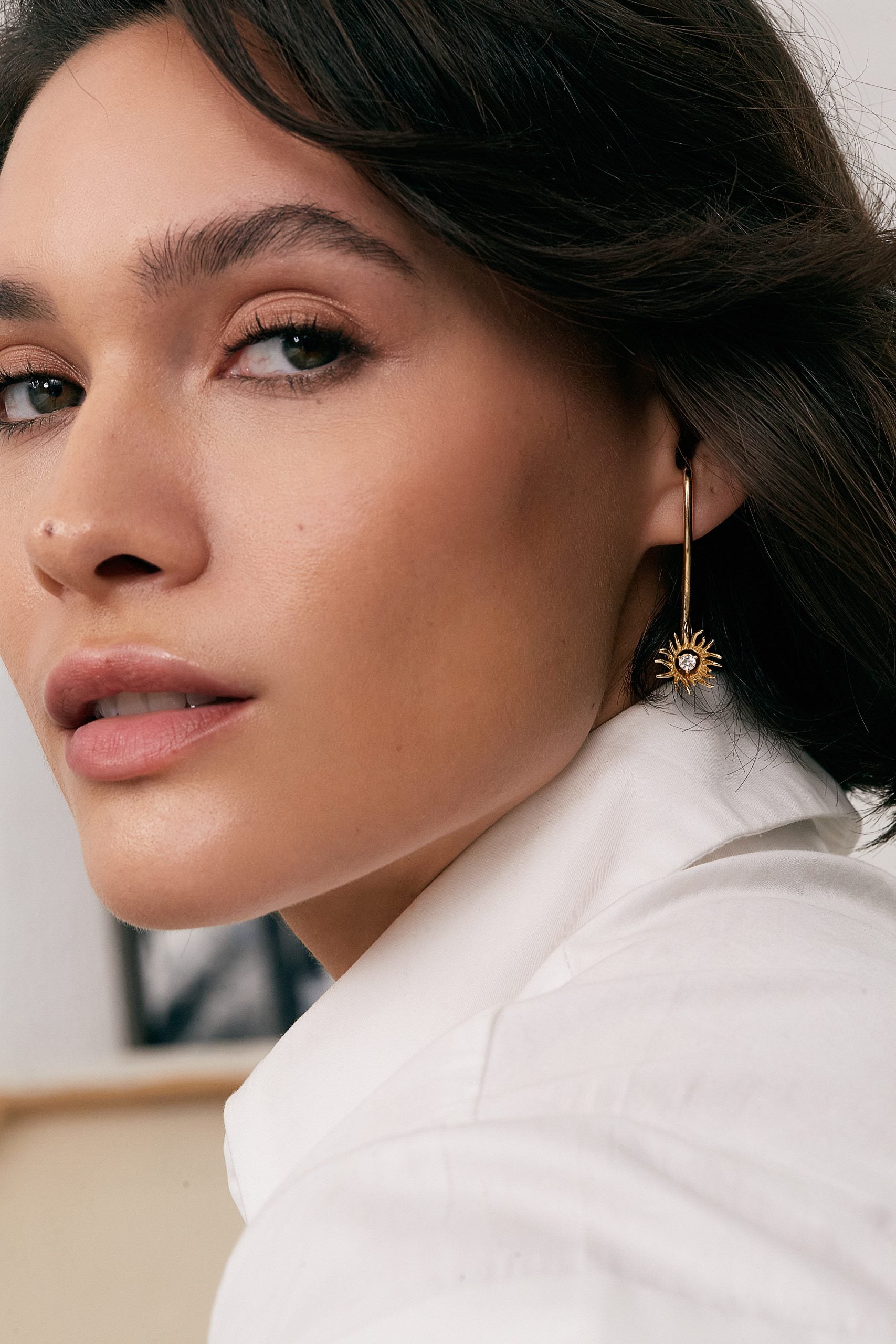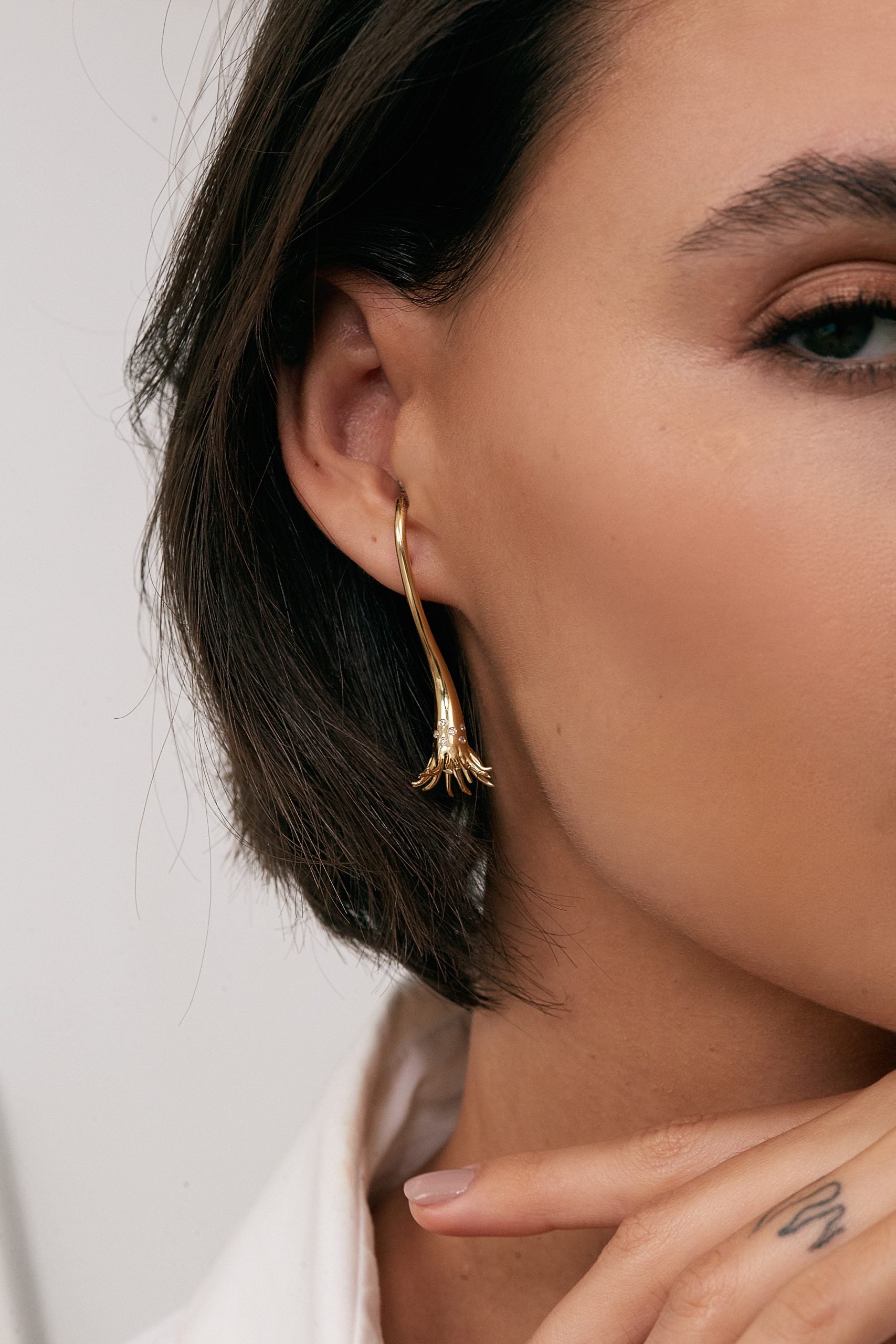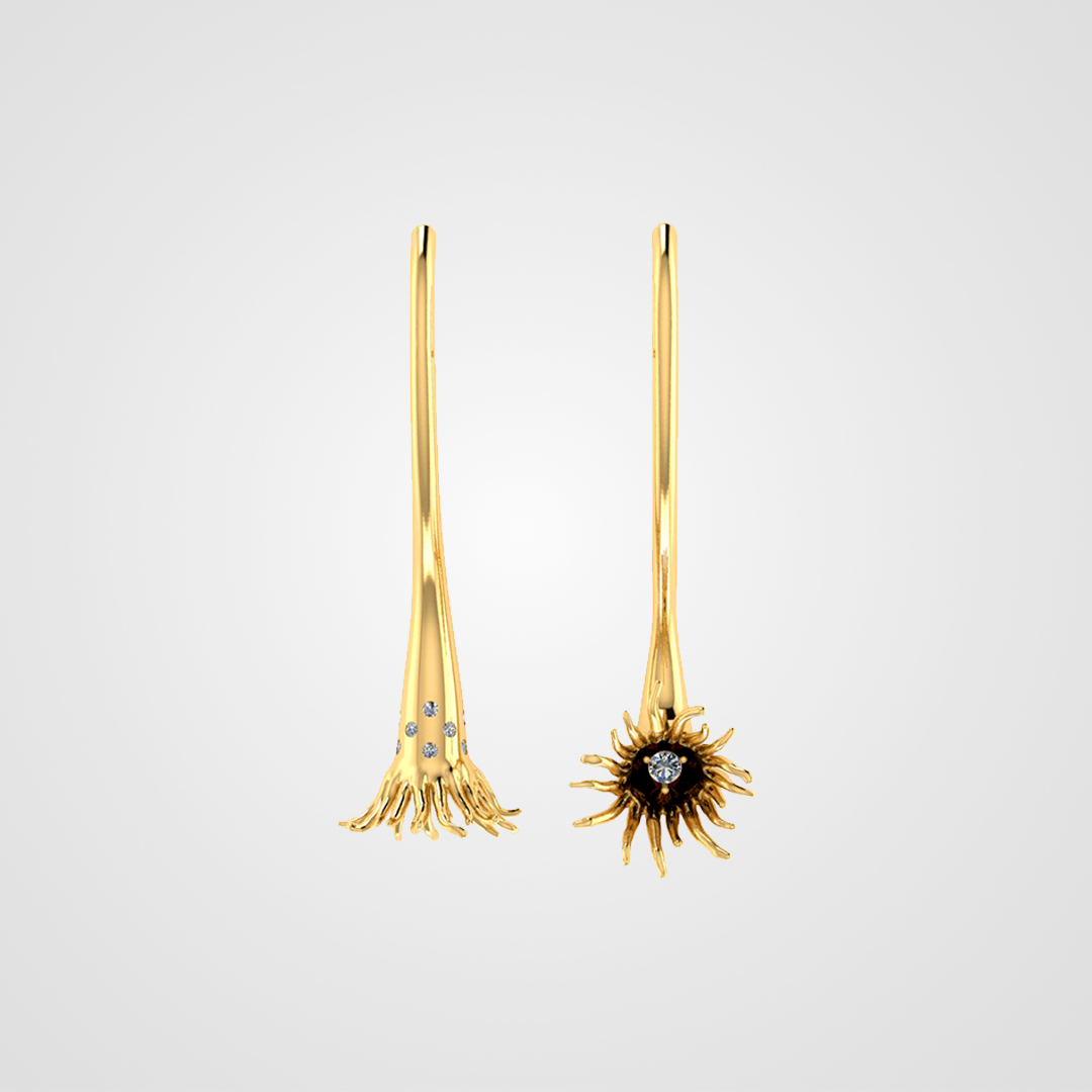 Os brincos Sagrado Feminino celebram a essência feminina e a conexão com o divino. Com um design único e elegante em forma de tuba, os brincos são uma representação visual da força e beleza da mulher. Feitos de ouro branco 18k, os brincos são adornados com diamantes e topázio incolor, adicionando um brilho sutil e elegante que complementa o design sofisticado da peça. O formato da tuba representa a fertilidade e a criação, enquanto os diamantes e topázio incolor simbolizam a pureza e a clareza da energia feminina. O design elegante e sofisticado dos brincos cria uma peça única e deslumbrante.