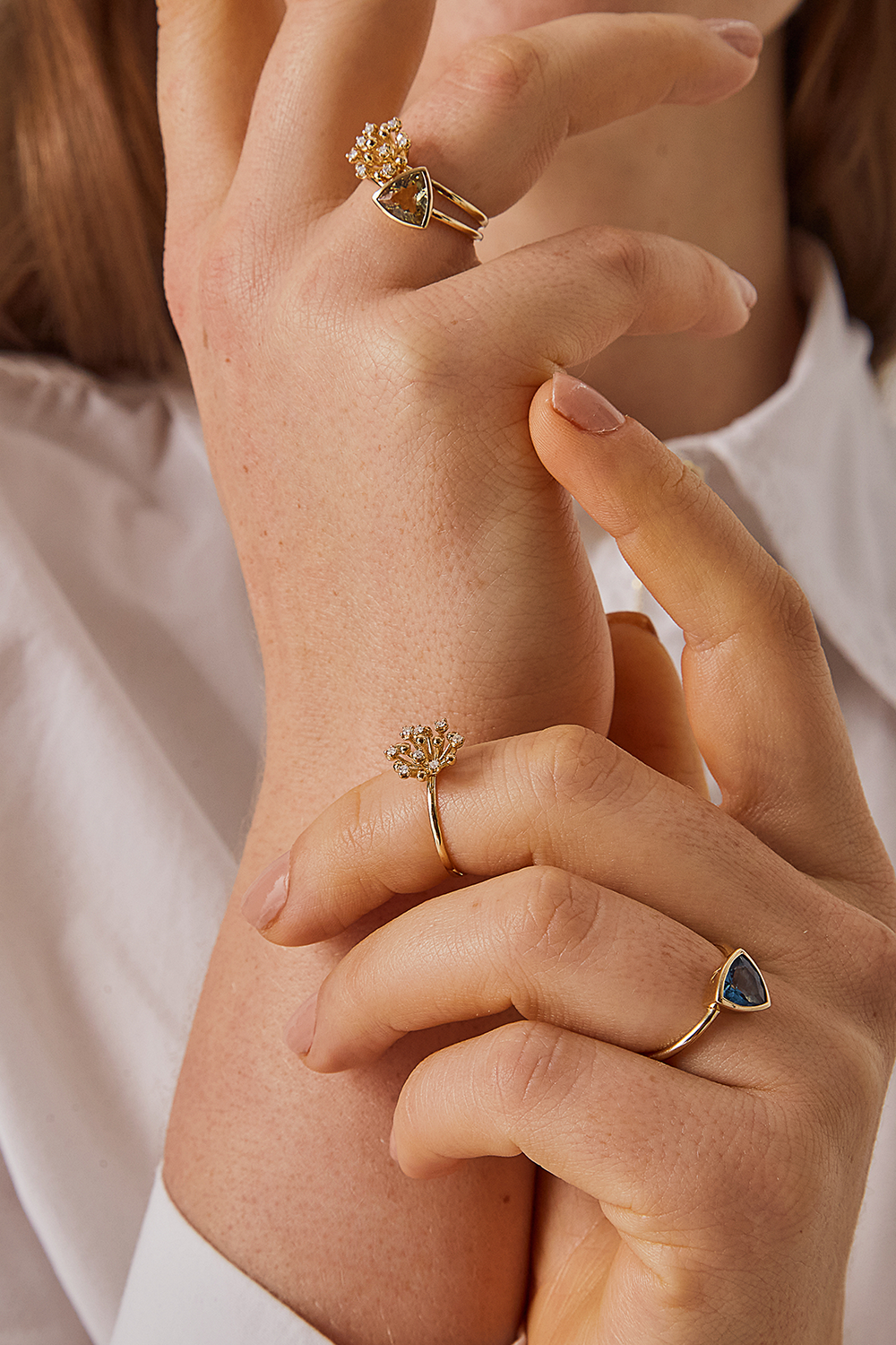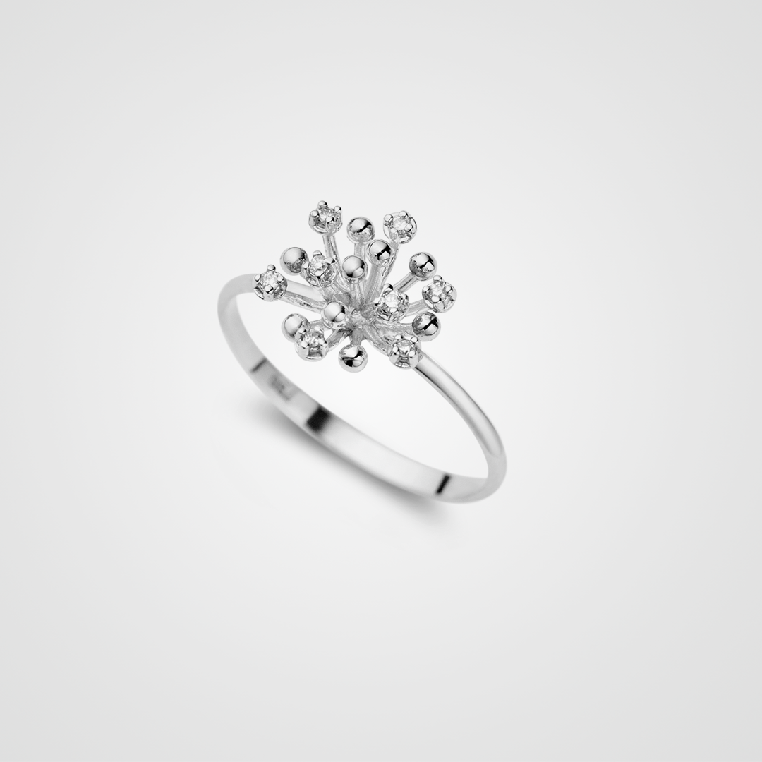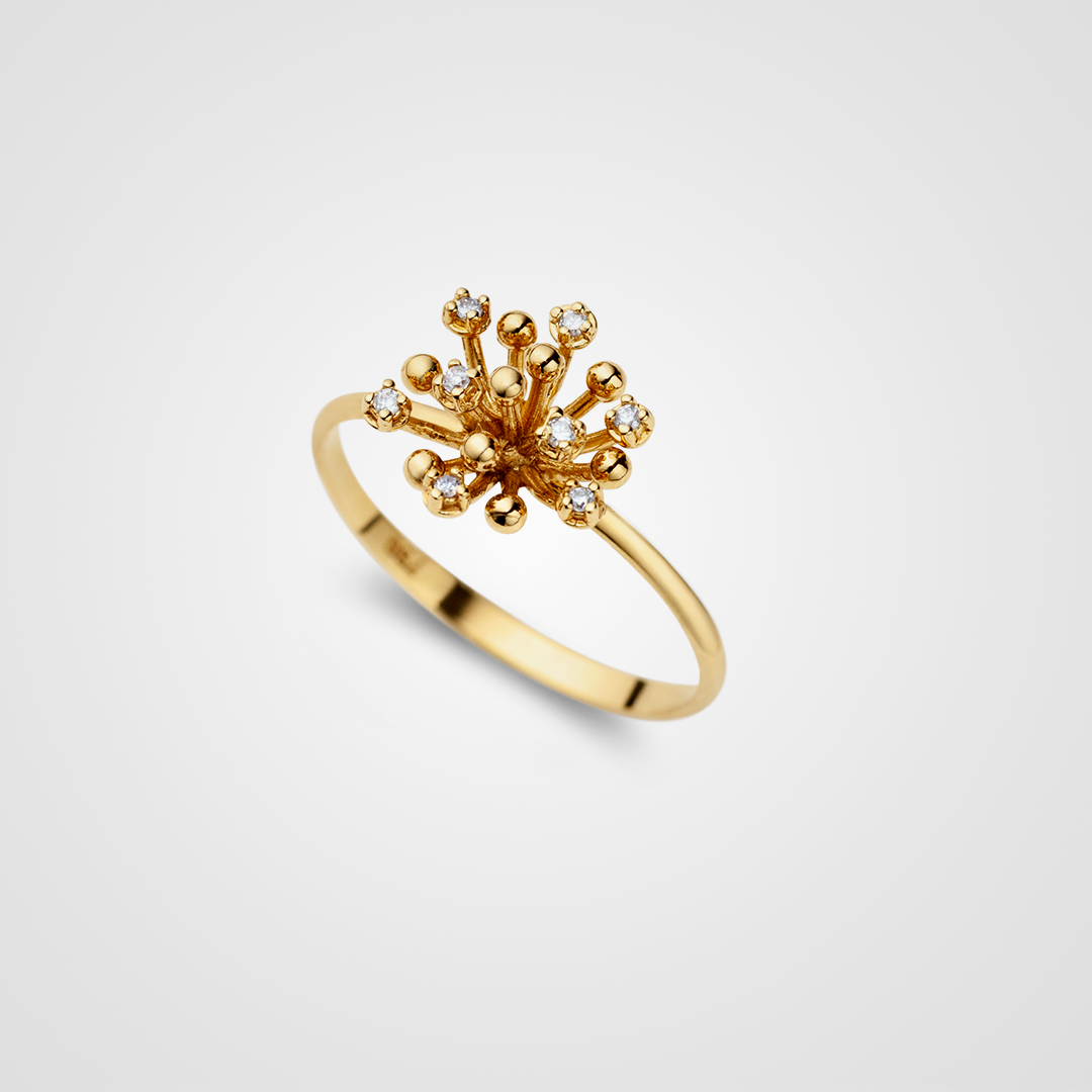 Delicado e elegante, o Anel Florescer, criado em ouro 18k e diamantes, é uma peça curinga que acompanha todo tipo de produção, tanto as mais casuais, quanto as mais sofisticadas.