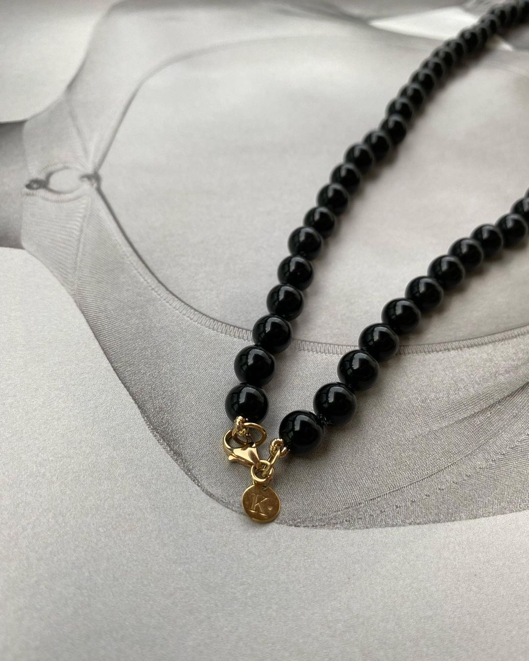 Colar em esferas de ônix de 6 mm e ouro amarelo 18k. Disponível em 40 ou 45 cm.